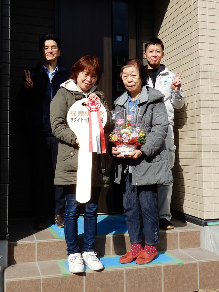 いくつかのハウスメーカーに行っても良い結果が得られず諦めかけていた時、たまたま通っていた道に西湘展示場が、その日オープンしたばかりでした。 しかも夕方の飛び込みの感じで寄らせてもらった時、Fさんに出会い話しを聞いてもらい対応がとても優しく、ダイトーさんに決めました。 そこから本当に本当に何度も壁にぶつかり心が折れそうな時、Fさんに「絶対大丈夫だから」「諦めないで」とお言葉をもらい救われました。 2年弱という月日はかかりましたが、Fさんが一生懸命になってくれた事に感謝の言葉しかありません。本当にありがとうございました。Iさん長く待たせてごめんなさい 。Sさん後から追加のわがまま言ってごめんなさい。 Fさん、はじめスタッフの皆様ありがとうございました。 これからもよろしくデス。