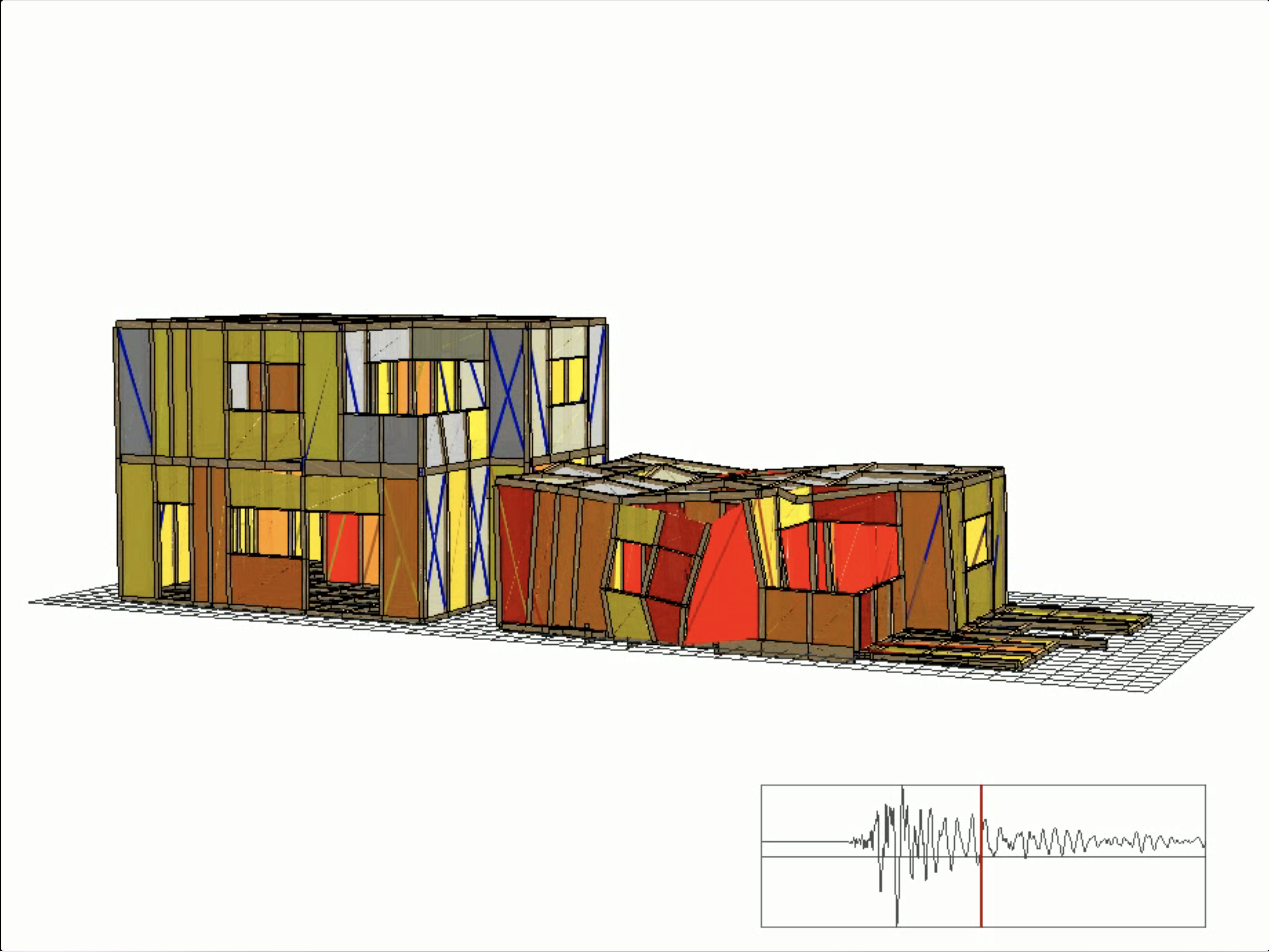 図面や数値だけでは分かりにくい「地震時の揺れ方」や「建物の変形」を、